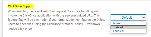 For fix when your Microsoft Edge (Chormium) not allow to to open files using the ClickOnce protocol.